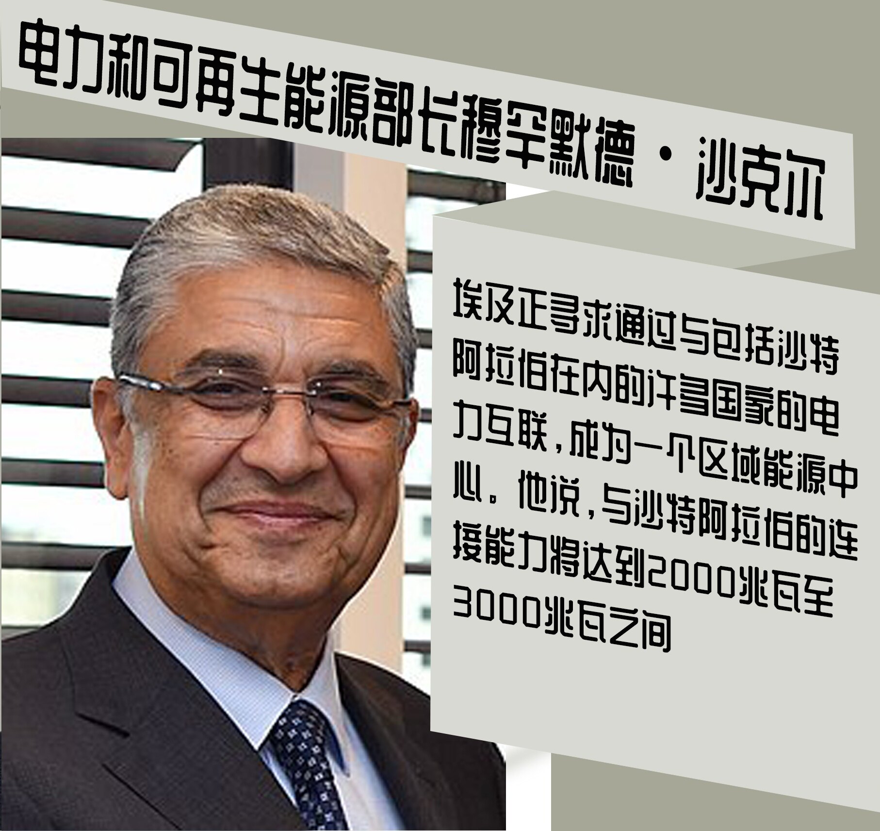 埃及官员已受邀参加下个月在俄罗斯举行的一期工程开工仪式。埃及与罗萨托姆签署了建立第一座核电站的协议,预计耗资约40亿美元。沙克尔说,埃及正寻求通过与包括沙特阿拉伯在内的许多国家的电力互联,成为一个区域能源中心。他说,与沙特阿拉伯的连接能力将达到2000兆瓦至3000兆瓦之间。