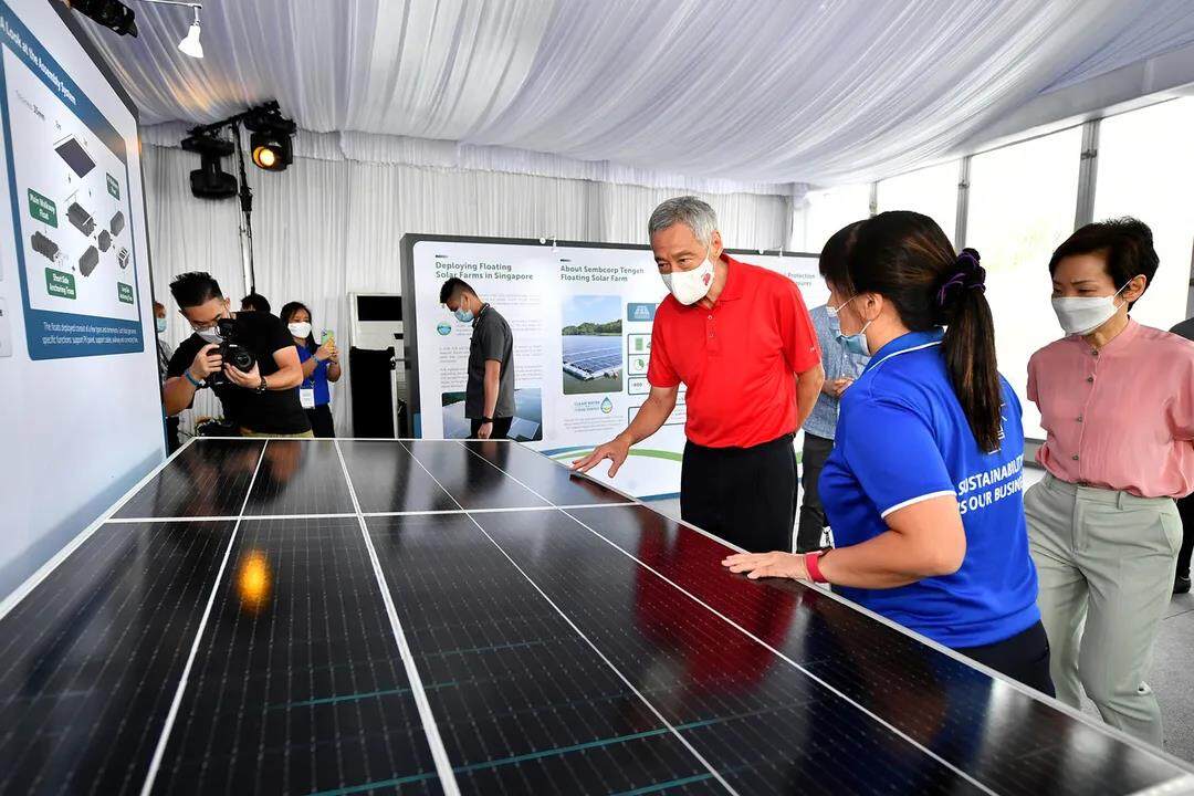 2021年7月14日中国能建山西院总承包的新加坡腾格水库60兆瓦水上光伏项目举行项目开幕式,新加坡总理李显龙出席开幕式并对项目进行了实地考察。