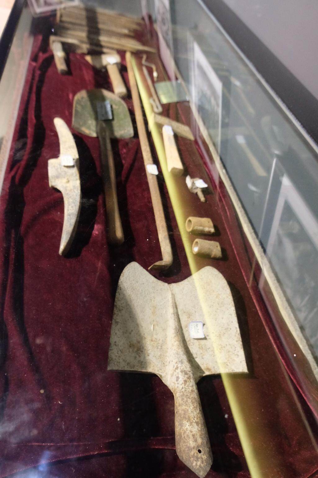铁道兵博物馆内,陈列着大量铁道兵曾经使用过的铁锹、铁铲、铁锤、钢钎等工具,当时铁道兵就是利用这些工具“逢山开路,遇水架桥”。“钢钎、铁锤、烂棉袄被称为铁道兵的‘三大法宝’。”王邦华解释,当时由于棉衣有限,不少战士退伍了棉袄继续传承下去。