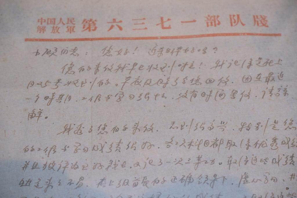 “小顾同志,您好,近来身体好吗?您的来信早已经收到啦!是在上个月25号收到的。本应及时给您回信,因最近一个时期,工作和学习很忙,没有时间写信,望谅解。”这封信的抬头是红色的“中国人民解放军第六三七一部队笺”,信中的“小顾”指的就是烈士顾永康,来信的是一位在江西当兵的李姓战友。在信件往来中,他们相互鼓励彼此虚心学习、勤学苦练,并附上了彼此的老照片,以表思念。顾永康生前这样的信件还有很多,甚至有些在他牺牲后都还没来得及打开。
