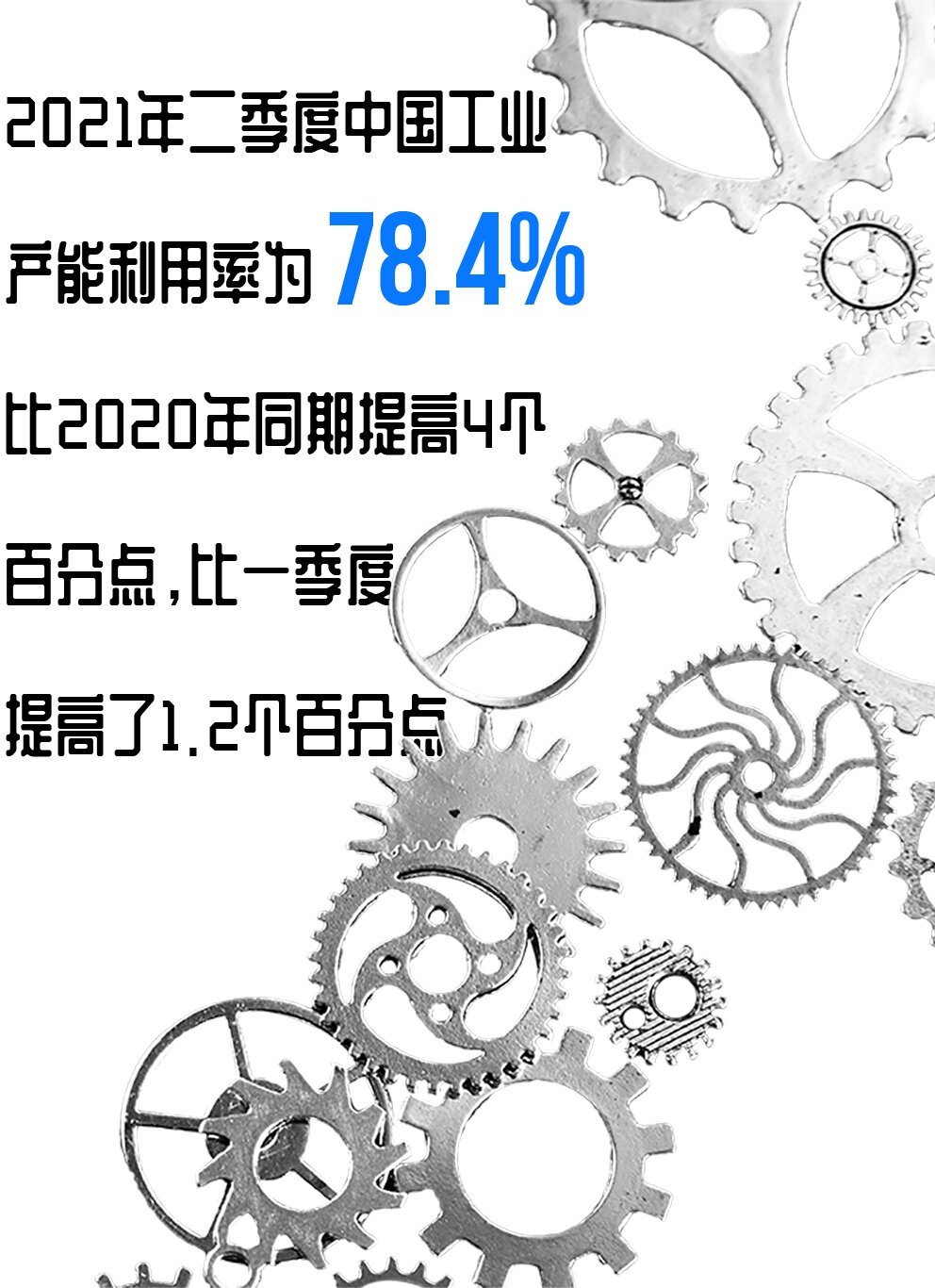 国家统计局当天公布的数据显示,中国产能利用率上升,2021年二季度全国工业产能利用率为78.4%,比2020年同期提高4个百分点,比一季度提高了1.2个百分点,经济发展的质量效益总体提升。