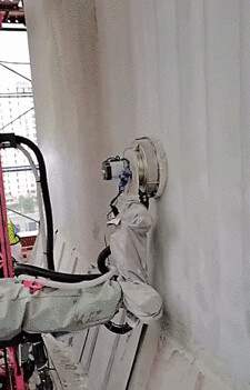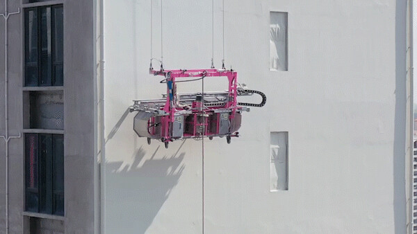 外墙腻子涂覆机器人,在施工过程中,能自动拟合墙面变化,自动进行第二例调整与涂覆,施工质量高、整体效率提高3倍。