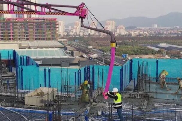 智能随动式布料机来了!看!粉红色“高个子”智能随动布料机,矗立在施工作业面上,这个项目所有楼栋的标准层,可都是由它泵出的混凝土浇筑而成的,累计作业量已超过2.2万立方米!