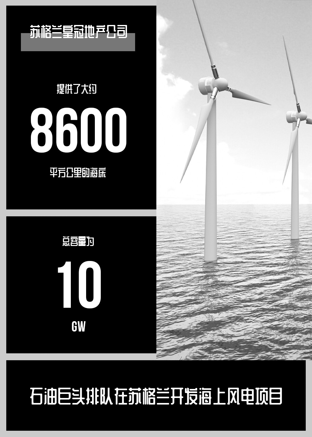 作为ScotWind租赁拍卖的一部分,世界上几家最大的化石燃料生产商已排队竞标在苏格兰海岸开发海上风电项目。苏格兰皇冠地产公司(该国主权房地产的托管人)提供了大约8600平方公里的海床,总容量为10吉瓦(GW)的目标用于开发,这是十年来首次海上风电拍卖。