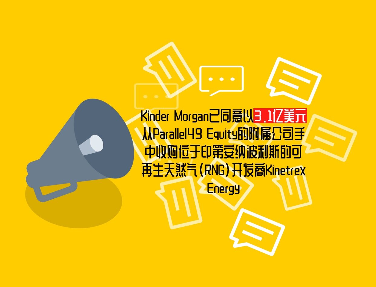 Kinder Morgan(KMI)已同意以3.1亿美元从Parallel49 Equity的附属公司手中收购位于印第安纳波利斯的可再生天然气(RNG)开发商Kinetrex Energy。