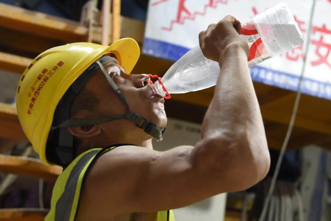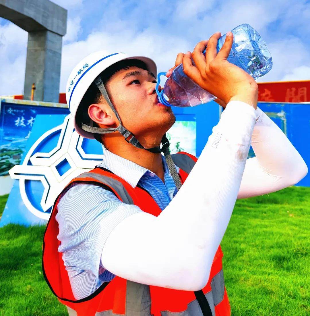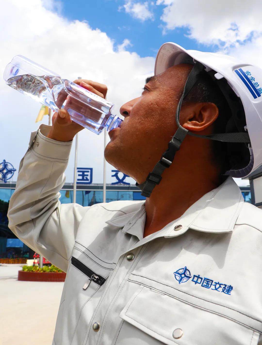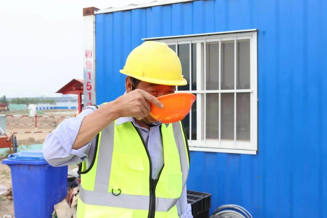 蓝天白云,喝水很“美”,晒热的矿泉水,是工地的“特产”。