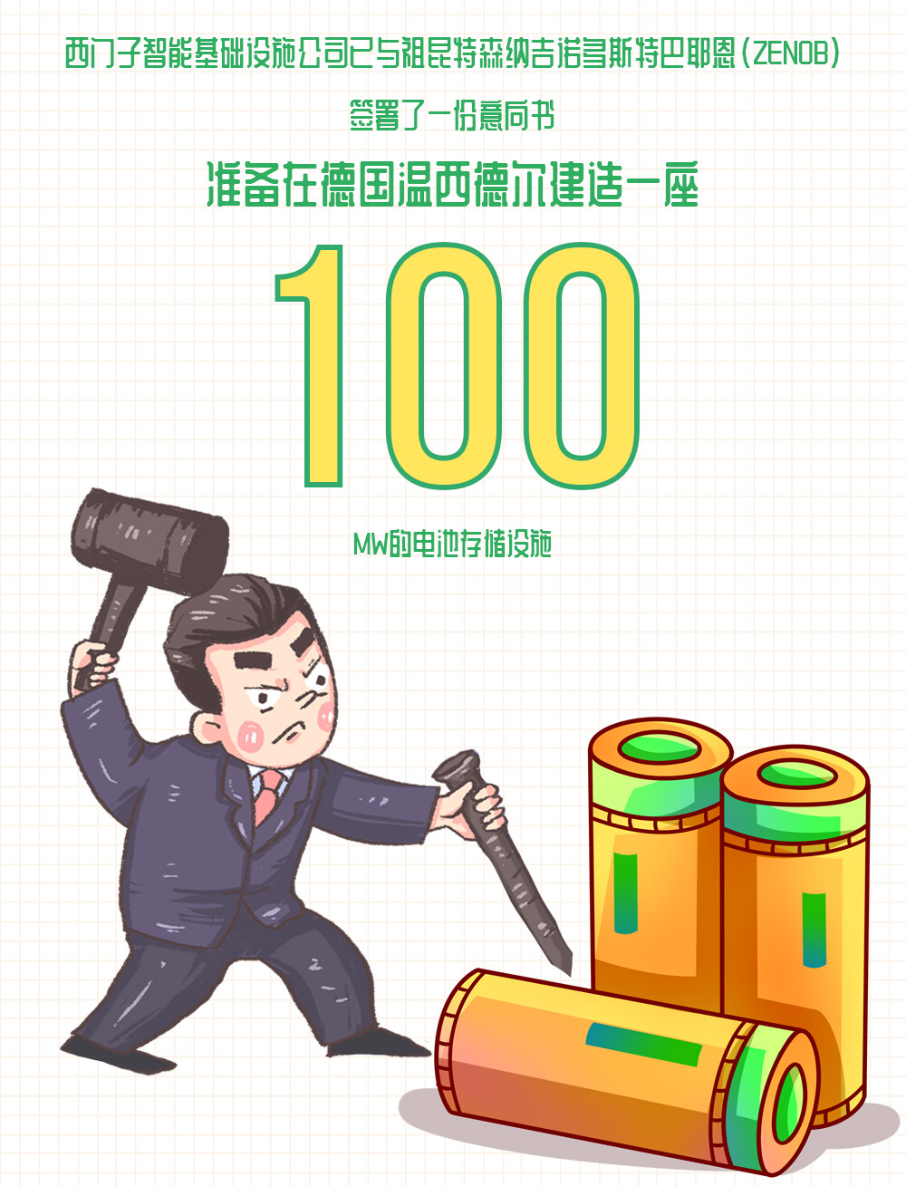 西门子智能基础设施公司已与祖昆特森纳吉·诺多斯特巴耶恩(ZENOB)签署了一份意向书,准备在德国温西德尔建造一座100MW的电池存储设施。