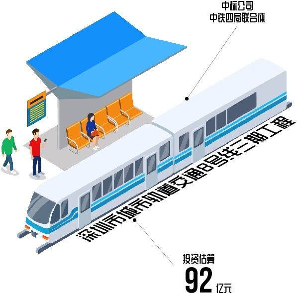2021年7月21日,中铁一局,中铁二局,中铁三局,中铁四局联合体中标深圳市城市轨道交通8号线三期工程项目,总投资92亿元。
