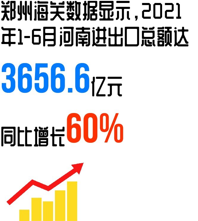 见道网从河南海关获悉,中国中部河南省在2021年上半年报告了强劲的对外贸易增长。郑州海关数据显示,2021年1-6月河南进出口总额达3656.6亿元人民币(约合564亿美元),同比增长60%。这一数字比 COVID-19之前的2019年同期增长了72.7%。郑州海关表示,贸易额创下上半年的历史新高。