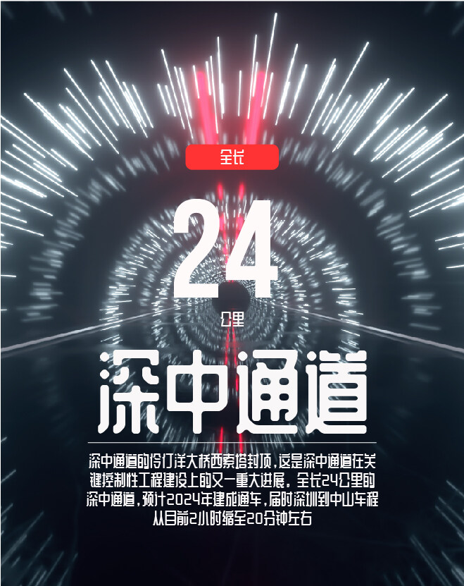 7月19日,深中通道的伶仃洋大桥西索塔封顶,这是深中通道在关键控制性工程建设上的又一重大进展。全长24公里的深中通道,预计2024年建成通车,届时深圳到中山车程从目前2小时缩至20分钟左右。