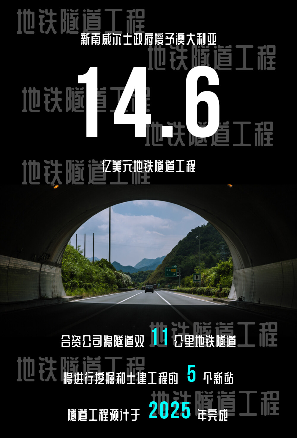 新南威尔士州政府授予澳大利亚阿奇奥纳建筑公司与澳大利亚费罗维亚建筑公司19.6亿澳元(合14.6亿美元)的悉尼地铁西隧道工程合同。