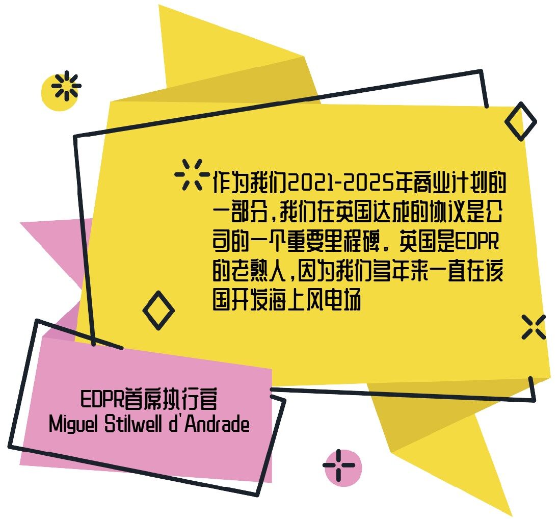 EDPR表示,该投资组合巩固了其在英国的整体足迹,目前通过与Engie 的 Ocean Winds合资企业,其在建的海上容量为1GW,正在开发中的海上容量为900MW。EDPR首席执行官Miguel Stilwell d'Andrade表示:“作为我们2021-2025年商业计划的一部分,我们在英国达成的协议是公司的一个重要里程碑。英国是EDPR的老熟人,因为我们多年来一直在该国开发海上风电场。”进入英国在岸市场为我们继续多元化业务开辟了新的可能性。这对我们来说是一个关键市场,我们将继续探索增加价值的机会,并加强我们在可再生能源领域的领导地位。