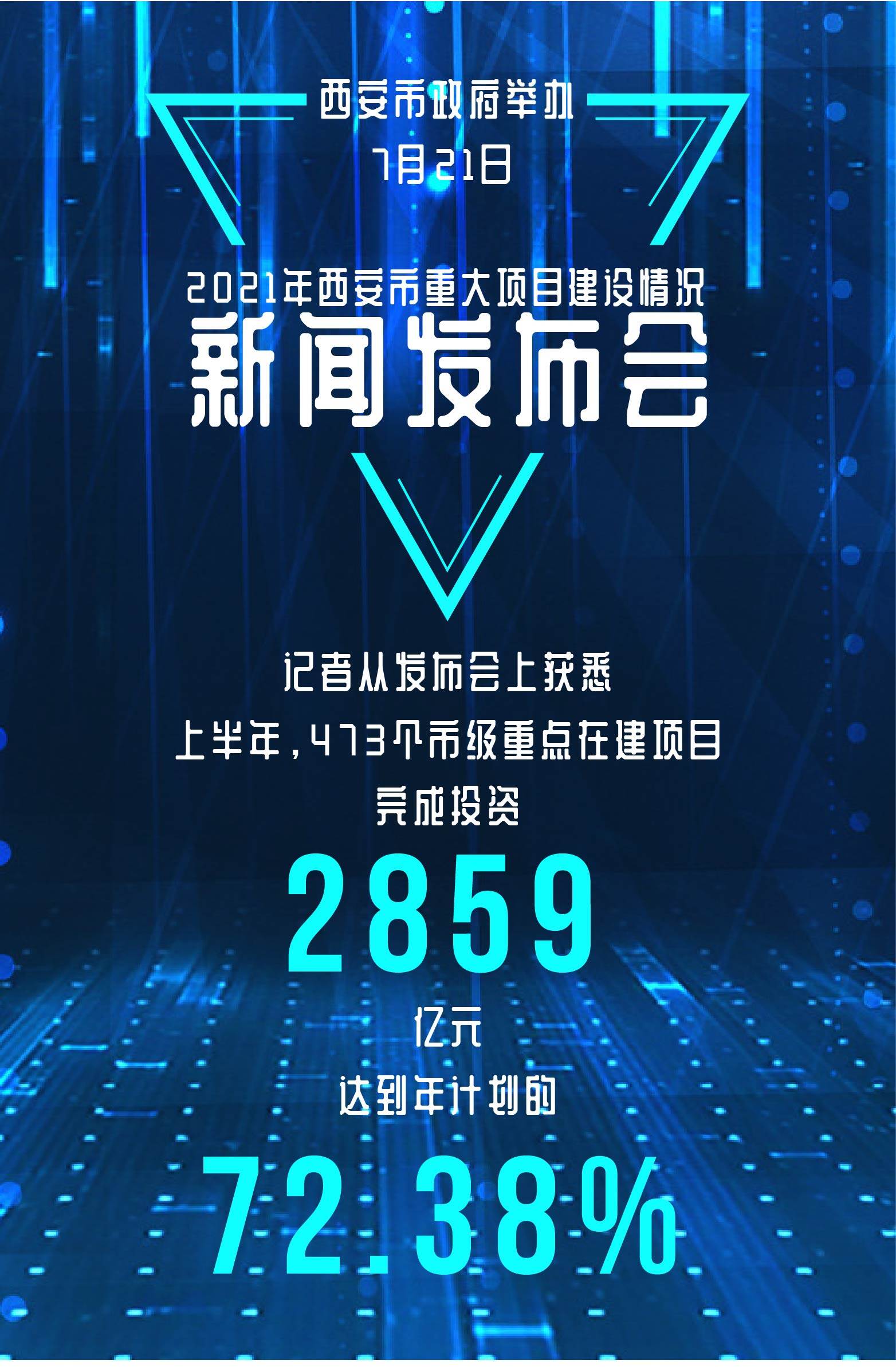 十四五规划开局之年,各地重点建设项目纷纷上马。7月21日,西安市政府举办“2021年西安市重大项目建设情况”新闻发布会。记者从发布会上获悉,上半年,473个市级重点在建项目完成投资2859亿元,达到年计划的72.38%。159个新开工项目中,已开工132个,开工率达83%。235个省市区重点项目竣工投运,释放产能943亿元,创造就业岗位超6.6万个。