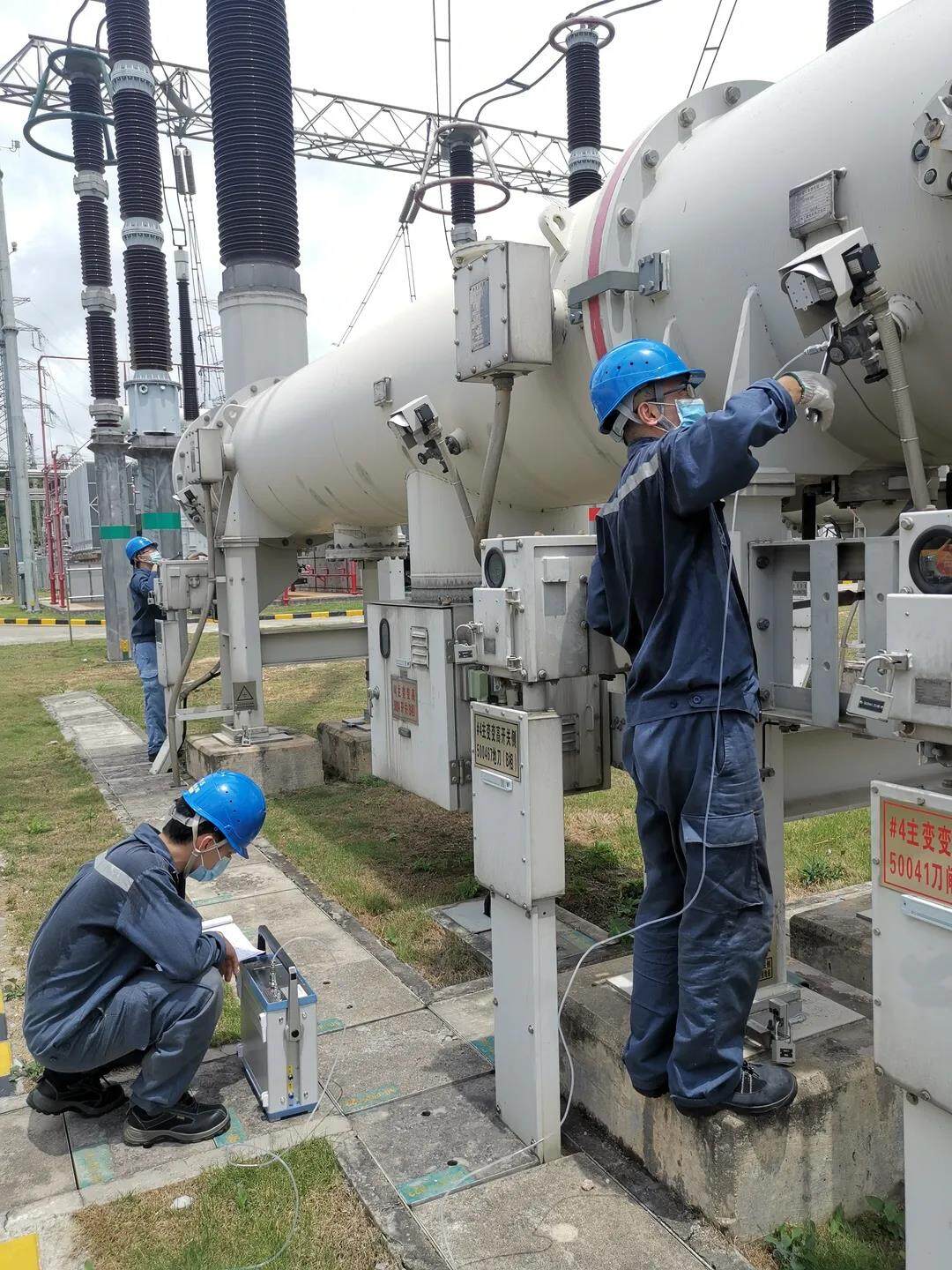 高温天气下用电负荷不断攀升,供电设备接近满载。为确保设备正常,南方电网深圳供电局试验班班员顶着烈日,经过连续6个小时的作战,完成了500千伏设备SF6气体试验工作。工服一次又一次被汗水浸湿,却抵挡不住供电人保证设备稳定运行的坚定信念。
