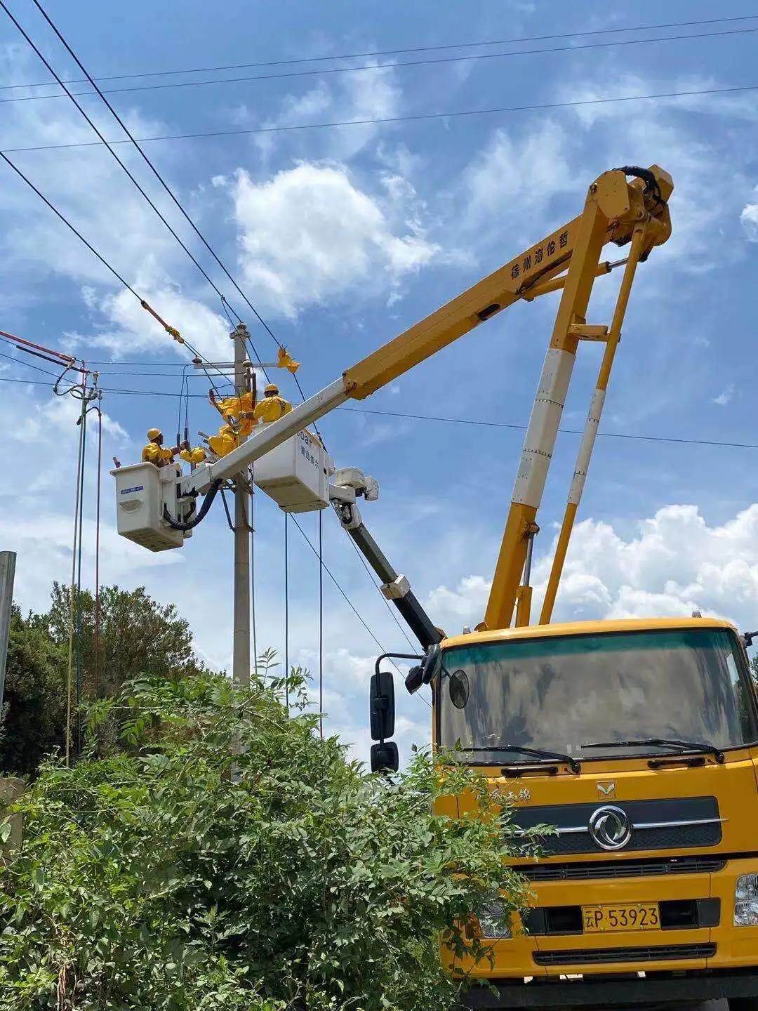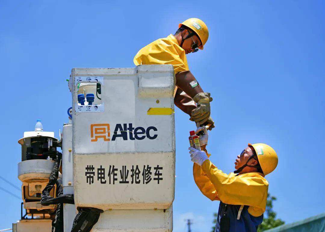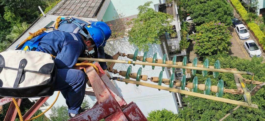 南方电网广东江门台山供电局下川供电所联合汶村所、深井所及运维中心进行线路设备检修,在烈日高温下化身“空中飞人”,用赤诚滚烫的汗水,为用户输送每一份清凉。