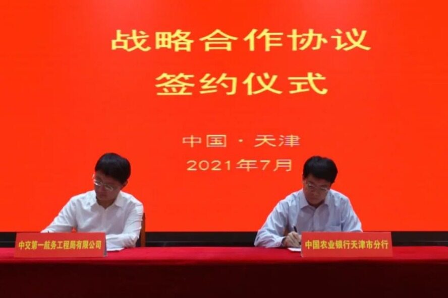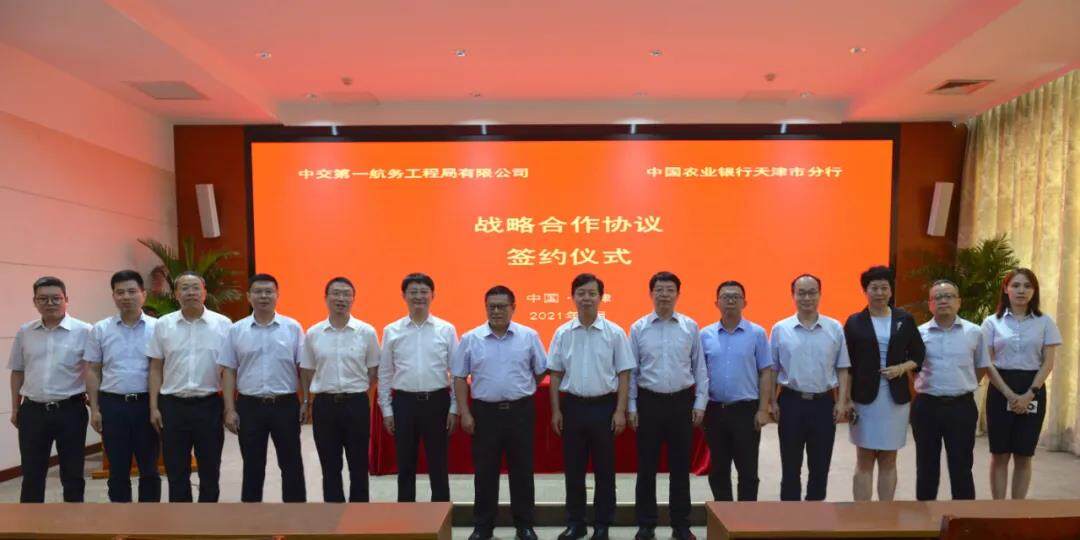 2021年7月23日,一航局与中国农业银行天津分行签署战略合作协议。农行总行大客户部总裁彭祖佑,天津分行党委书记郑祖刚、副行长张敬涛,中国交建财务资金部总经理张震,一航局领导由广君、沈德、武志华出席。