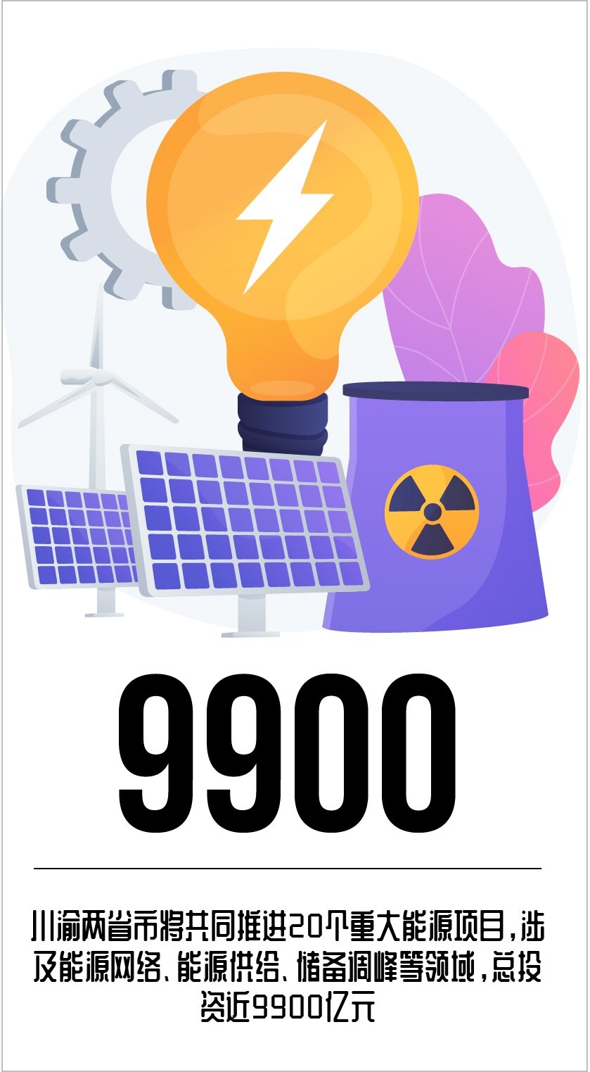 重庆市人民政府、四川省人民政府于日前签署战略合作框架协议,提出进一步深化川渝能源合作,携手打造具有中国影响力的能源绿色高效利用示范区和重要清洁低碳能源生产基地,助推川渝电网高质量发展。国际能源网记者获悉,川渝两省市将共同推进20个重大能源项目,涉及能源网络、能源供给、储备调峰等领域,总投资近9900亿元,其中“十四五”期间投资超过4000亿元。