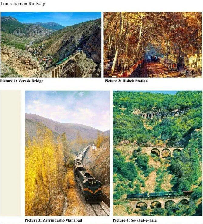 这条路线的特征之一在于地理环境的多样性,伊朗纵贯铁路联通该国北部的里海和南部的波斯湾,穿越厄尔布尔士山脉和札格罗斯山脉,以及众多河流、高原、森林和平原,跨4个气候区。铁路沿线可以领略到伊朗不同气候区的多种地貌以及壮丽景色,既有高山峡谷森林湖泊,也有原野草场沙漠。