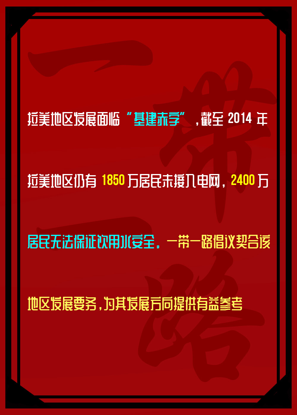 近年来,一部分拉美国家渐渐意识到基础设施和互联互通的重要性。一带一路倡议契合该地区发展要务,为其发展方向提供有益参考。(转载请注明见道网 www.seetao.com )见道网一带一路栏目编辑/田增鹏、设计/张韬