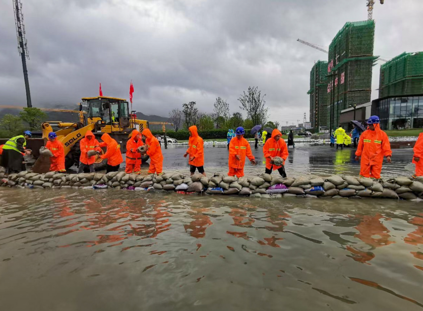 7月25日起,中铁二十一局集团浙江金义东塘雅车辆段项目部、祁婺高速项目成立应急救援小组,750余人随时待命,对项目驻地进行全面排查,对塔吊群进行维保,起重机等设备收车停放至安全区域,对员工宿舍、施工厂房、各类大棚做好防风加固、防洪排水、沟渠疏浚、涵洞疏通和河道清理工作。