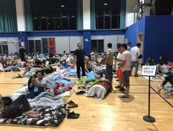 7月24日,台风前奏的暴雨汹涌而来,铁四院秦望通道工程总承包项目部第一时间启动应急避险点,要求各单位现场临时宿舍逐一紧闭门窗,断电断水,贴好封条,并尽快完成人员转移。17时,现场772人分6个组全部顺利安置。