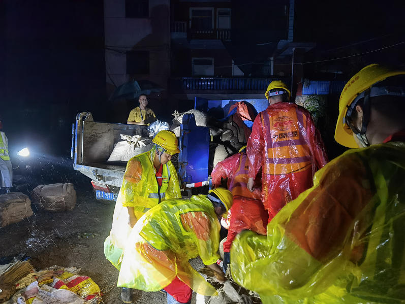 中铁二十五局集团场口公寓房八期项目部接到杭州市常绿镇永兴河段突发险情通知。项目部迅速组织30余名志愿者成立抢险突击队,赶赴抢险现场。从得知消息到准备物资、组织人员到抢险现场仅28分钟。突击队员冒着大雨肩扛手提钢管、构筑防护围栏,用3个小时沿河堤修建了一条近2公里的防御带,为永兴河两岸百姓生命安全增添一道保障。
