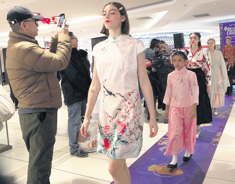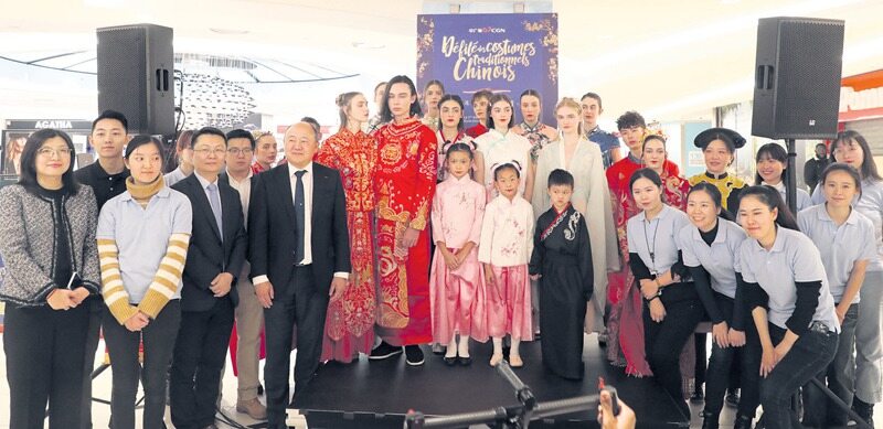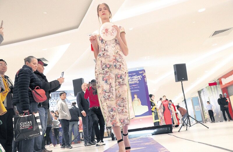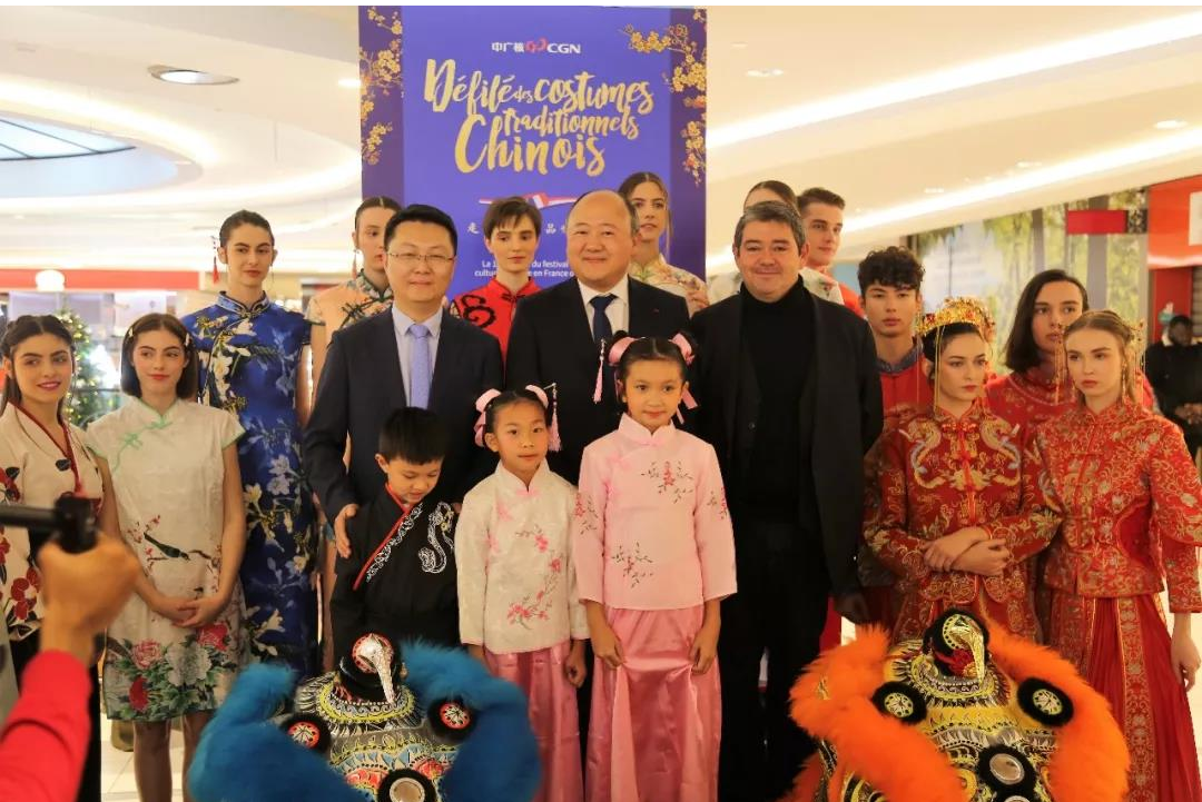 舞狮结束后,重头戏拉开帷幕:中国传统服装走秀闪亮登场。20余名高挑俊美的法国模特身着中国服装款款走来,一场中西合璧,传统与现代相融合的中国服装秀精彩呈现。一百余套中广核集团专程从国内精心采购的以汉服为主,兼顾其它年代特色的服饰一经亮相就惊艳四座,观众们目不暇接,大饱眼福的同时,还饶有兴味地倾听着各种服饰的历史和特点介绍,增加了对中国悠久文化的了解。当天下午,每隔一个小时,就会有15分钟的走秀,展示不同年代的传统服饰。现场观众通过当天下午的四场服装走秀,欣赏到了汉服、唐装、旗袍等中国传统服装,感受到中国历史悠久的文明。