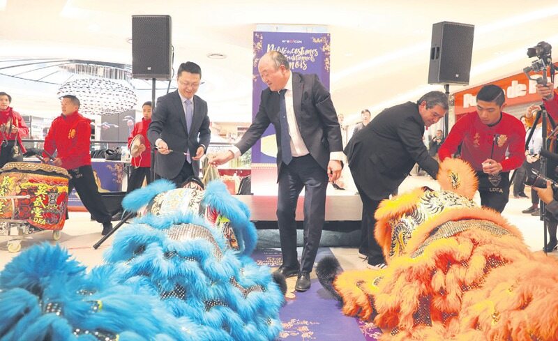 活动首先以舞狮开场。舞狮队伍中有两头狮子,每头狮子由两个人合作表演,一人舞头,一人舞尾,身形灵巧的同时非常富有阳刚之气。法国民众纷纷停下脚步,兴致勃勃地感受中国传统文化的魅力。