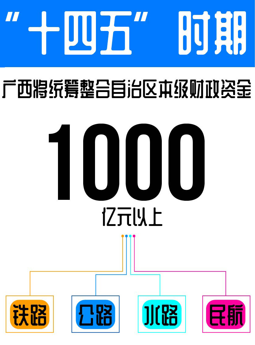 为加速实践交通强国建设目标,促进经济高质量发展。广西壮族自治区人民政府办公厅近日印发《关于加快建设交通强区构建现代综合交通运输体系若干政策措施》(以下简称《措施》)。“十四五”时期,广西将统筹整合自治区本级财政资金1000亿元以上,支持铁路、公路、水路、民航等重大交通基础设施建设。