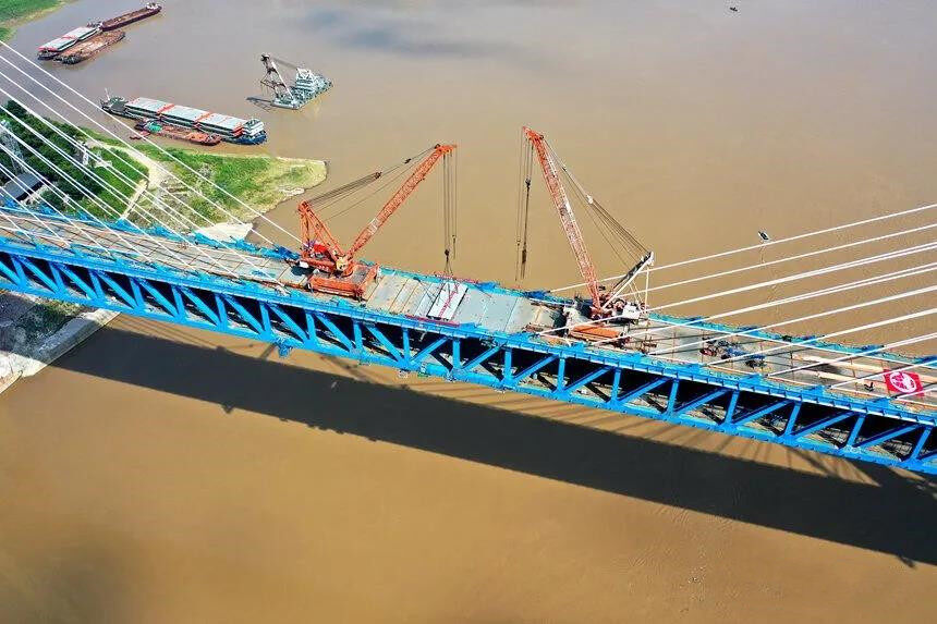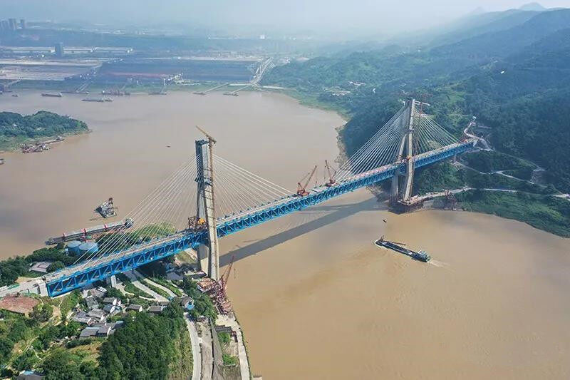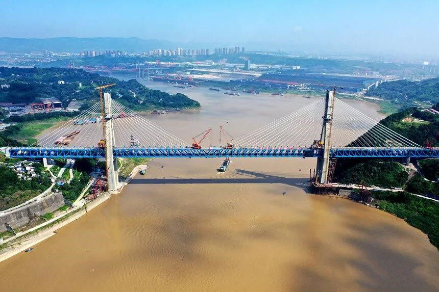 It is reported that Mingyuexia Yangtze River Bridge is located in Yuquan Village, Guangyang Town, Nan'an District, Chongqing City, on the upper reaches of the Yangtze River. It is the first double-layer four-track railway asymmetric vase-shaped steel truss cable-stayed bridge with a total length of 877.8 meters, of which the main span is 425 meters. , The upper level is reserved for the double-track high-speed railway (originally planned for the Da-Chongqing intercity railway), and the lower level is the double-line passenger and freight railway of Chongqing East Ring Line. The steel truss girder of the bridge adopts the N-shaped main truss structure and the orthotropic dense cross-beam deck system, with a total of 69 sections and a total weight of more than 26,000 tons.