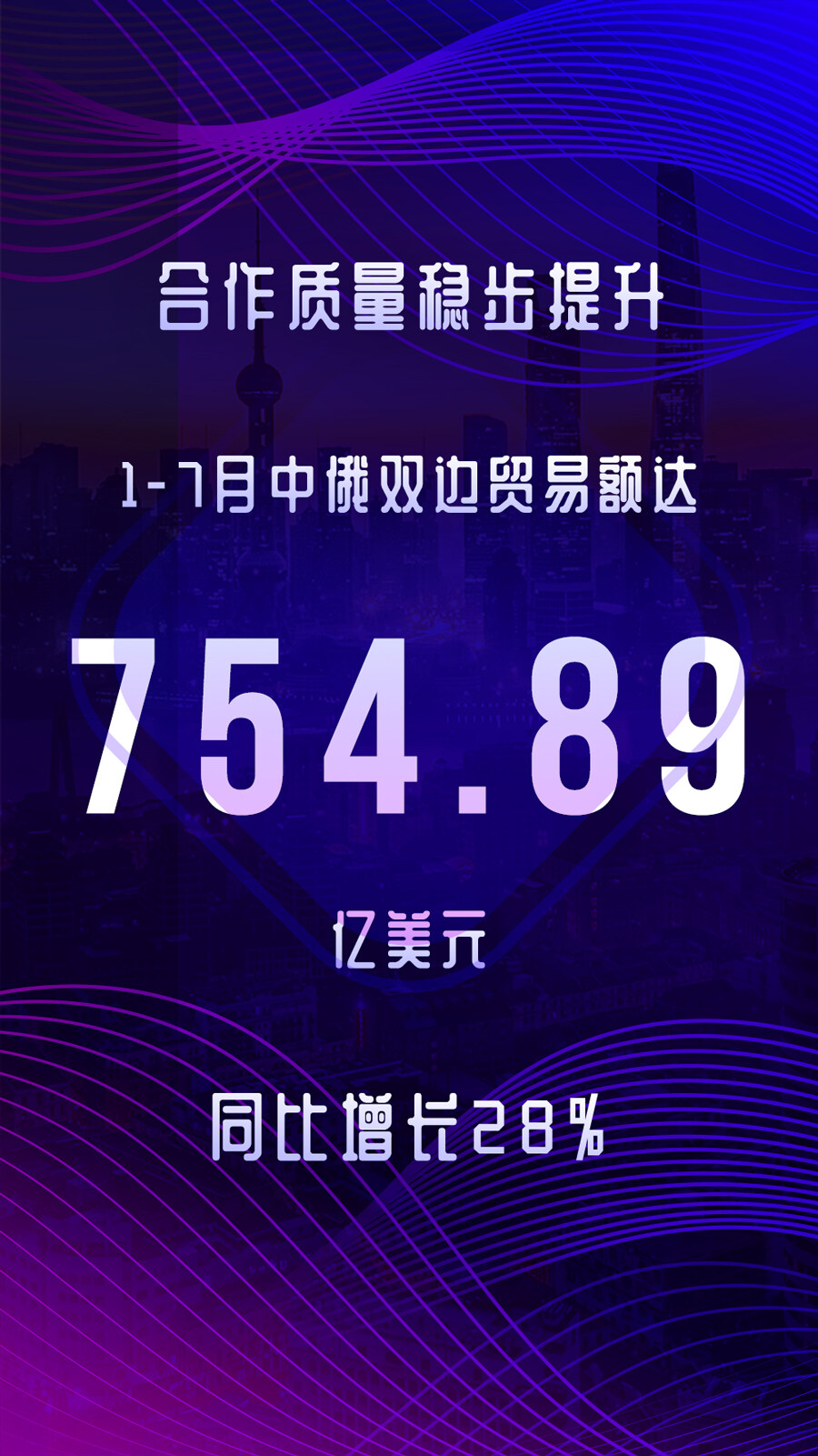 2021年8月29日,见道网从中国海关总署发布的统计数据获悉,2021年1-7月,中国与俄罗斯双边贸易额达到754.89亿美元,同比增长28%。疫情之下,中国与俄罗斯经贸合作逆势前行,呈现出全方位、高水平的发展态势,体量与质量同步提升,不断取得新的成果。