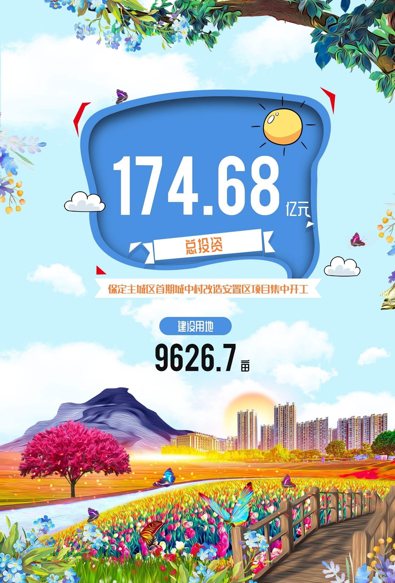 保定市首期城中村改造安置区建设共17个村,其中中国中铁联合体投资承建的保定市城中村改造连片开发ABO项目(一标段)一期估算投资额约174.68亿元,中国中铁所属中铁一局、中铁三局、中铁四局、中铁六局、中铁电气化局、中铁建工、中铁大桥局、中铁华铁等单位参与工程设计和施工。项目位于保定市莲池区,共8个村3385户,13945人,村域面积12214.16亩,规划城镇建设用地9626.7亩,可出让用地4370.7亩。