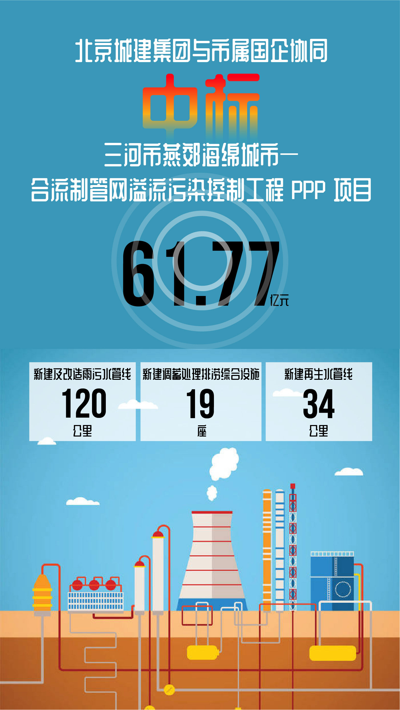 三河市燕郊海绵城市—合流制管网溢流污染控制工程 PPP 项目选择社会资本方采购工程,采取 BOT(融资和建设-运营-移交)模式实施,是继北海PPP工程后,集团与北京城市排水集团联手的又一PPP水环境治理工程。项目合作期 20 年,其中建设期 2 年、运营期 18 年。